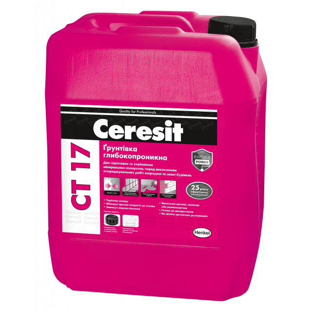 Грунтовка Ceresit CT 17 призначена для зміцнення і просочення пористих, неміцних і сильно підстав (л.....