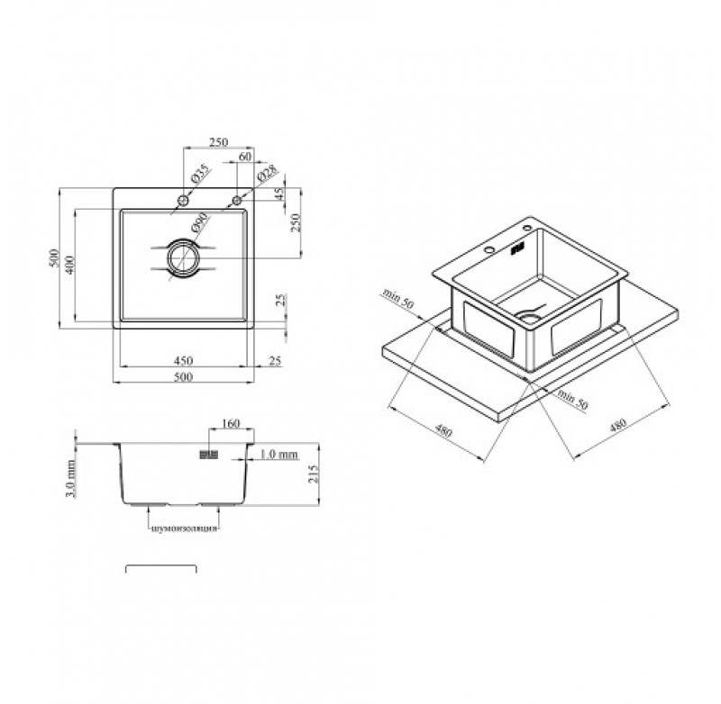 Кухонна мийка Kroner Derby KRP Brush - 5050HM - це стильне та функціональне рішення для вашої кухні. Мийка має квадратну форму з розмірами 500 мм х 500 мм. Ця компактна форма робить її відмінним варіантом для кухонь різних розмірів. Висота мийки становить 215 мм. Вона виготовлена із нержавіючої сталі, що робить її міцною і довговічною. Мийка має стальний колір та брашовану поверхню, що надає їй елегантний вигляд. Ця мийка має інтегрований спосіб монтажу, що дозволяє вбудовувати її гармонійно у кухонний інтер'єр. Мийка обладнана переливом і сифоном, що робить її функціональною та зручною в експлуатації. До комплекту мийки входять сама мийка, сифон, злив-перелив та кошиковий вентиль, що робить її готовою до встановлення та використання.Кухонна мийка Kroner Derby KRP Brush - 5050HM - ідеальний вибір для вашої кухні. Вона поєднує в собі стильний дизайн і практичність, дозволяючи вам з легкістю виконувати кухонні завдання та додавати естетичний шар вашому інтер'єру.