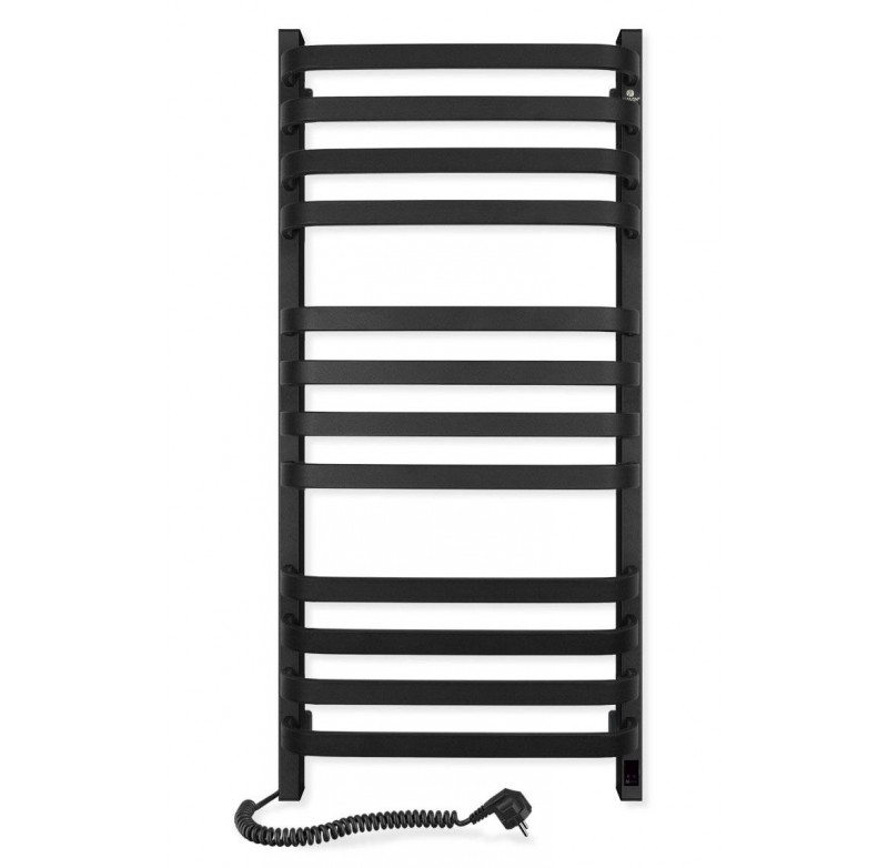 Рушникосушка Navin Stugna 480х1000 Sensor (розташування шнура з вилкою — ліворуч; колір — чорний муар) від українського виробника NAVIN виготовлена з вуглецевої сталі, яка відрізняється високою якістю й міцністю. Модель має надійне порошкове покриття. Товщина стінки колекторів (стійок) і перемичок сушки для рушників дорівнює 1,5 мм.