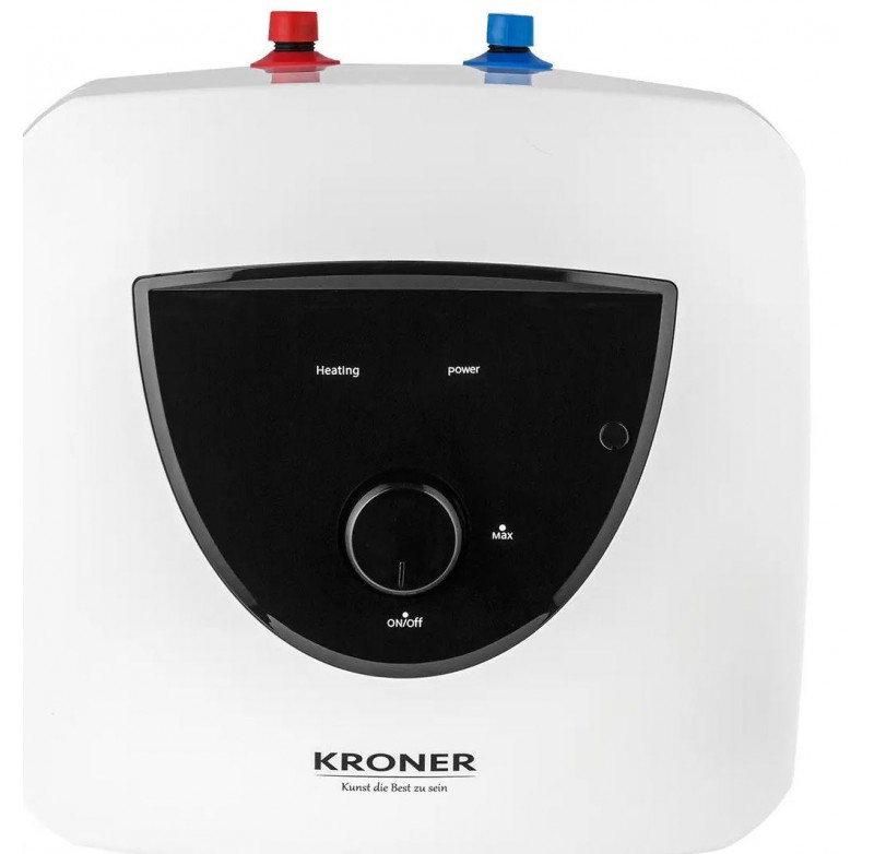 • Бренд: Kroner• Серія: Small• Матеріал: Пластик• Установка: Під мийкою• Спосіб монтажу: Настінний• Тип управління: Механічне• Тип нагрівального елемента: Мокрий ТЕН• Колір: Білий• Об'єм бака: 10 л• Потужність: 1.5 кВт• Робочий тиск: до 0,6 МПа• Напруга живлення: 220 В/50 Гц• Максимальна температура нагріву: 75 °C• Клас захисту: IPX4• Кількість ТЕНів: 1• Час нагріву, хв: 9• Висота, мм: 360• Ширина, мм: 350• Глибина, мм: 290• Гарантія: 60 місяців на бак, 12 місяців на електричні елементи• Країна-виробник: Китай