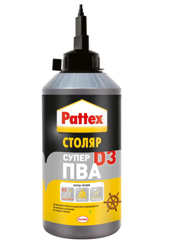 Pattex Супер ПВА D3 — універсальний клей, призначений для виготовлення вікон і дверей, ме.....
