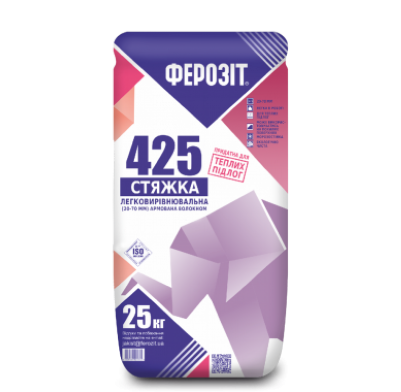 Ферозіт 425 — легковирівнювальна суха суміш на основі цементу та наповнювачів для виконання підготовки (стяжки) з товщиною шару 30-70 мм для вирівнювання поверхонь, накриття трубопроводів, розподілу навантажень на теплозвукоізоляційні шари. Може використовуватись на похилих поверхнях. Для внутрішніх та зовнішніх робіт.