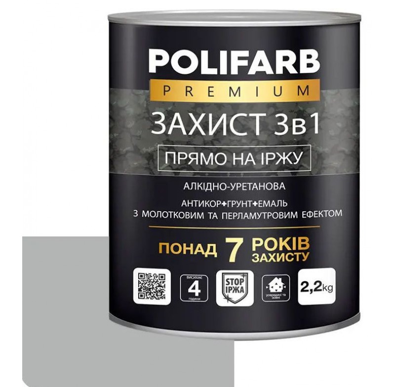 Фарба молоткова Поліфарб 2 кг срібло