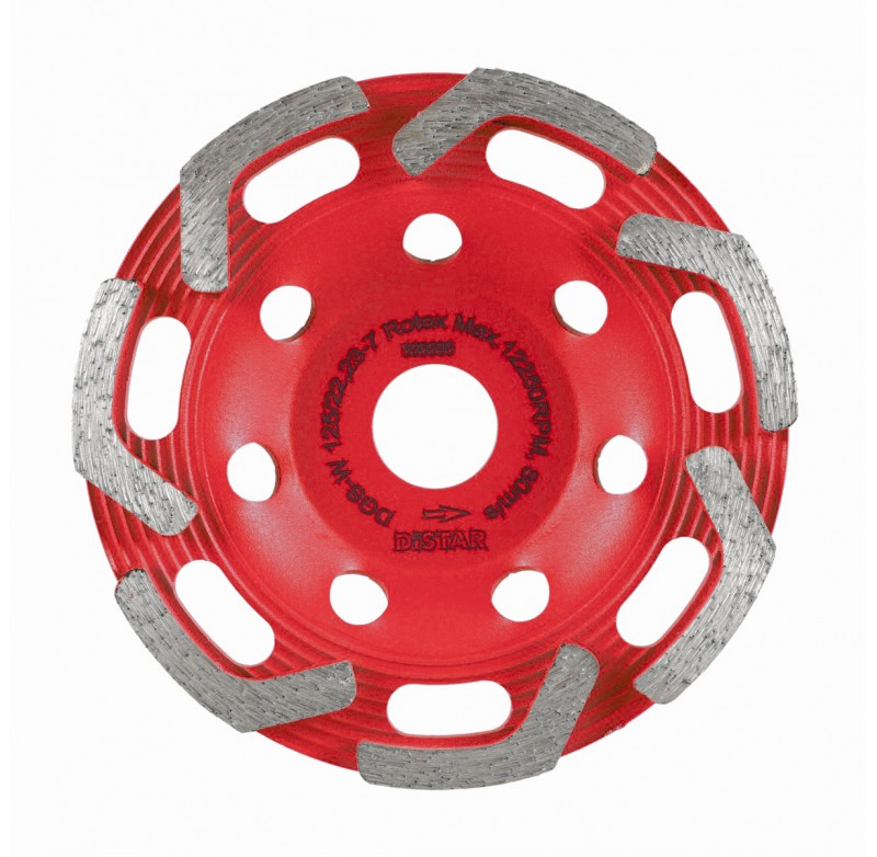 Алмазна фреза DISTAR ROTEX DGS-W стає ідеальним рішенням для шліфування поверхонь з бетону, зокрема використовується для стін і підлоги. За рахунок спеціально розробленої форми алмазного сегменту, виконаного у вигляді букви L, дозволяє максимально ефективно відводити шлам з робочої площі.
