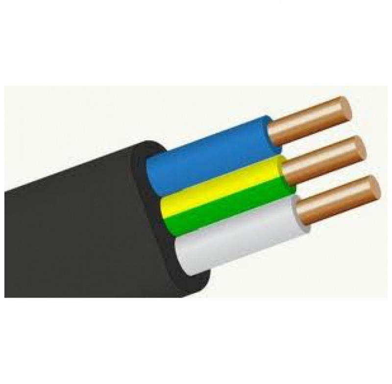 - Кабель (провід) ВВГ 3х2,5мм² (має 3 мідні скорочення монолітні жили перерізом 2,5мм²) з ПВХ (полівінілхлоридної) ізоляцією і оболонкою яка не підтримує горіння.