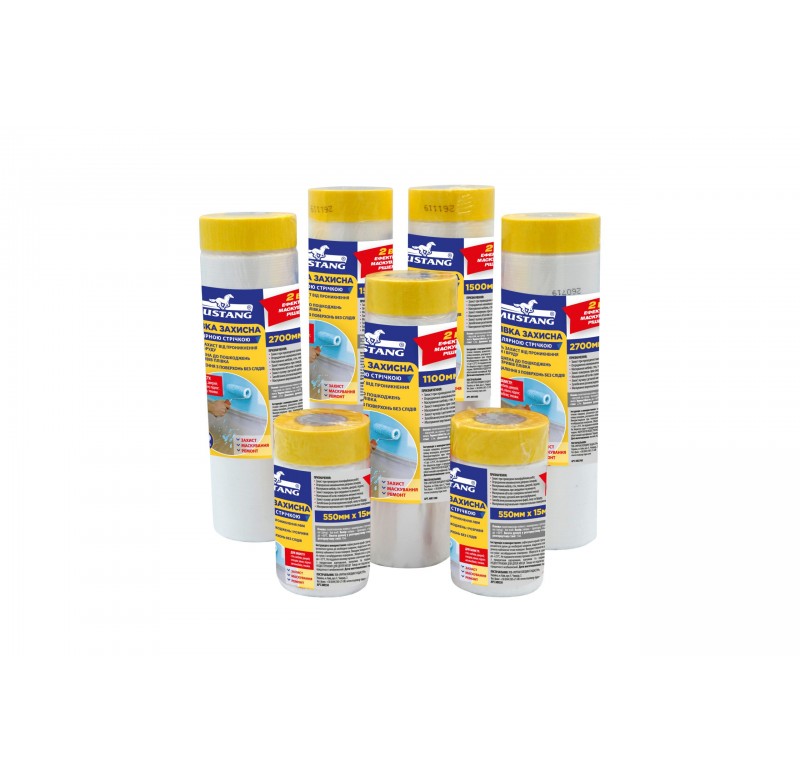 • Плівка захисна з малярною стрічкою 150сm*15м MASKING ROLLER MUSTANG (MR1500)