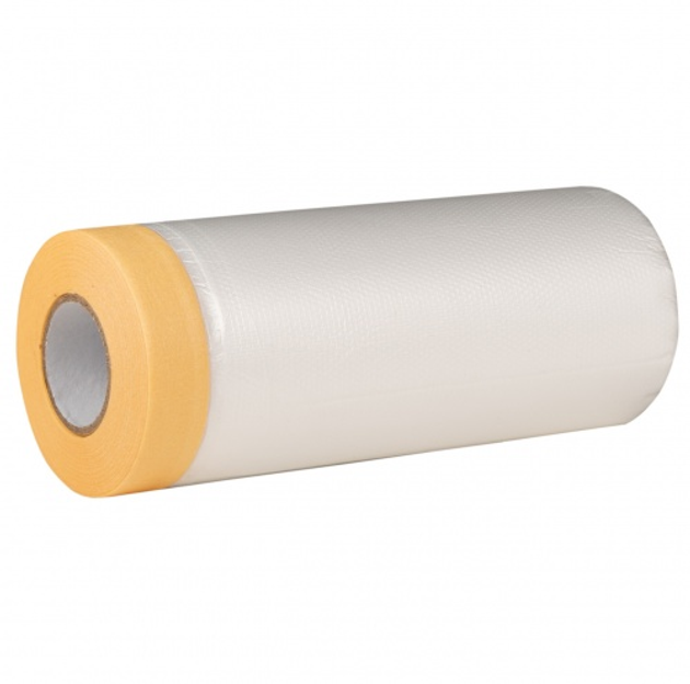 Захисна плівка з малярною стрічкою 550 мм х 20 м підходить для лакофарбових робіт і захисту пло.....