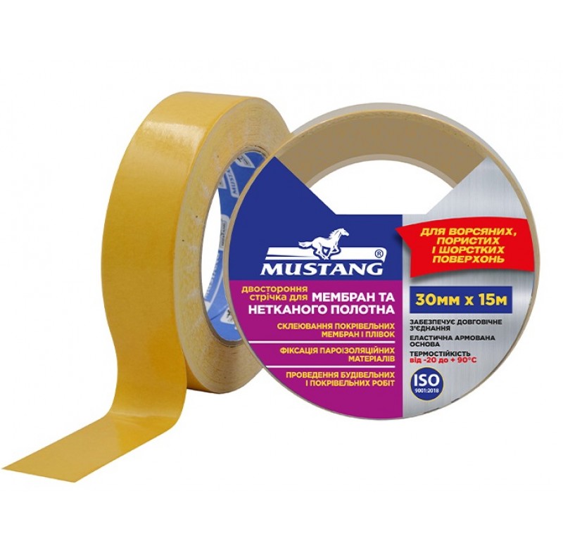 Еластична віскозна основа стрічки щільно прилягає до ворсяних та нетканих поверхонь, запобігаючи ризику відклеювання матеріалів. Витримує температуру до +90°C.