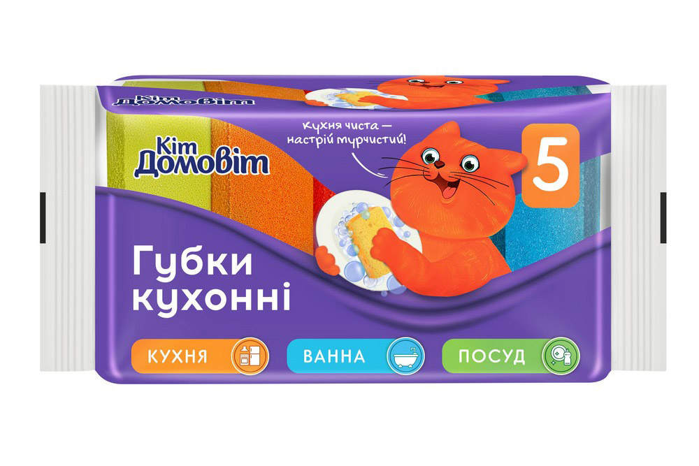 Губки кухонні 5 шт Кіт Домовіт 4820204405038.Губки для миття посуду. Завдяки комбінації якісного пор.....