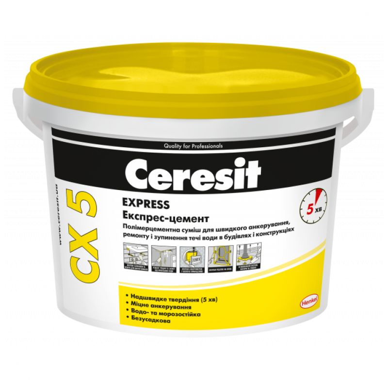 Суха суміш Ceresit CX 5 призначена для анкерування металевих і пластикових деталей у бетоні, кам'яному або цегляному муруванні, ремонту та зупинення протікання води в конструкціях будівель і споруд.