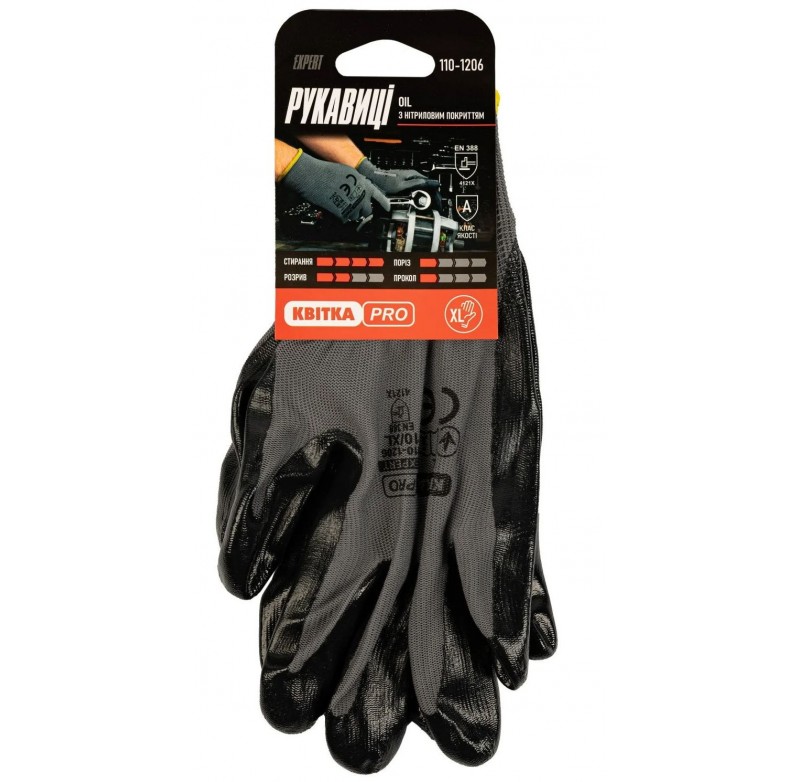 Рукавиці з нітрил OIL 10 Expert сірі КВІТКА PRO (110-1206-10-INI)
