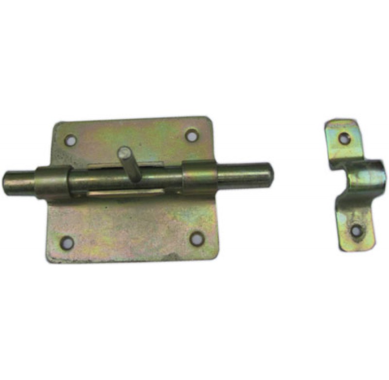 Засув призначений для закриття дверей підсобних приміщень, ванної кімнати, балконних дверей, хвірток.Складається з нерухомого корпусу та рухомого затвора, що фіксується скобою в положенні закрито-відкрито шляхом провертання затвору в корпусі за допомогою вмонтованої в затвор ручки.Виготовлений з листового металу.Розміри корпусу 80х72 мм., затвор Ø12х125 мм.Покриття – гальванічне цинкування.