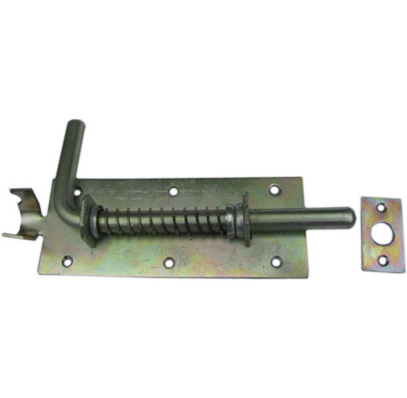 Призначений для фіксації гаражних дверей, дверей складських приміщень, воріт, в основному, з середини приміщення.Складається з нерухомого корпусу, рухомого затвора, що заходить в отвір запірної планки.У закритому положенні затвор, під зусиллям пружини, фіксується в запірній планці, у відкритому – вилкою корпусу.Виготовлений з листового металу.Розміри основи 200х70 мм, затвор Ø12х200 мм.Покриття – гальванічне цинкування.