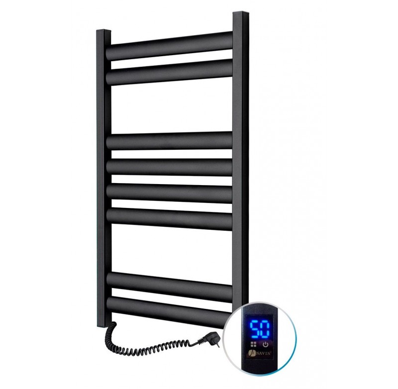 Рушникосушка Ellipse 500х800 Sensor (колір — чорний муар; розташування шнура з вилкою — ліворуч) від українського виробника NAVIN виготовлена з вуглецевої сталі, яка відрізняється високою якістю й міцністю. Модель має надійне порошкове покриття. Товщина стінки колекторів (стійок) і перемичок сушарки дорівнює 1,5 мм.