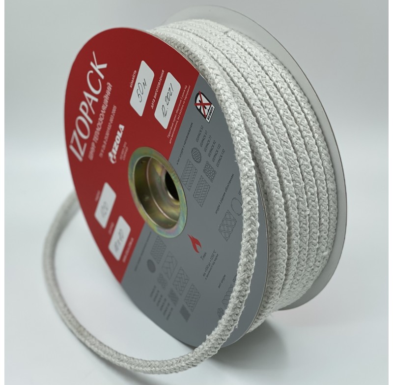 Теплоізоляційний шнур IZOPACK–120 складається з муллітокремнеземної нитки, армованої металевою жаростійкою ниткою.