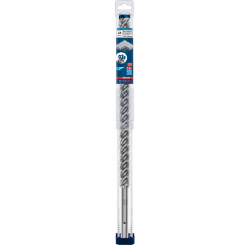 Свердло Bosch Expert SDS-Max-8X діаметром 28 мм, робочою довжиною 400 мм, повною — 520 мм для швидкого виготовлення отворів у бетоні, зокрема армованому, бетонних блоках, камені, цеглі.