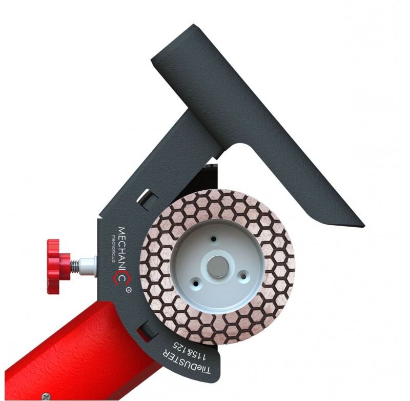 Шліфуй кромку без пилуЗастосовується для відведення пилу при шліфуванні кромки керамічної плитки, керамограніта, граніту, мармуру.Операції шліфування кромки керамічної плитки алмазними фрезами на кутошліфувальній машині завжди супроводжуються істотною кількістю пилу.Кожух для відведення пилу TileDUSTER позбавить майстра від цієї проблеми.Насадка-кожух легко встановлюється на штатний кожух кутошліфувальної машини, надійно фіксується гвинтом.Виріб має незначну вагу так що робота буде легкою і комфортною.Завдяки відкритій конструкції, забезпечується повний огляд і контроль зони шліфування.Насадка універсальна. Підходить під будь-які моделі кутошліфувальних машин 115, 125 мм незалежно від виробника. Рекомендується використовувати із фрезами 100 мм.