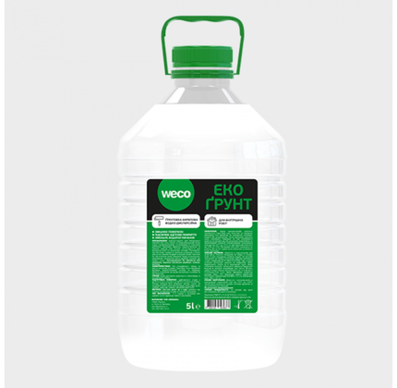 Ґрунтовка акрилова “ЕКО ҐРУНТ” ТМ “WECO” (ТМ “ВЕКО”) – це універсальна ґрунтовка, в економ упакуванні, що пвикористовують для попередньої обробки стін, стель, підлог та інших мінеральних основ перед оздоблювальними, ізоляційними та захисними роботами. Ґрунтовка “ЕКО ҐРУНТ” вирівнює водопоглинання та зміцнює верхній шар основи. Застосовується для внутрішніх робіт по цементних, гіпсових, гіпсокартонних, бетонних і цементно-вапняних поверхнях, а також для цегли, каміння та фарб на водній основі. Наносять на підготовлену рівну поверхню перед штукатуркою, шпаклівкою, шпалерним клеєм, фарбою, основою під паркет тощо.
