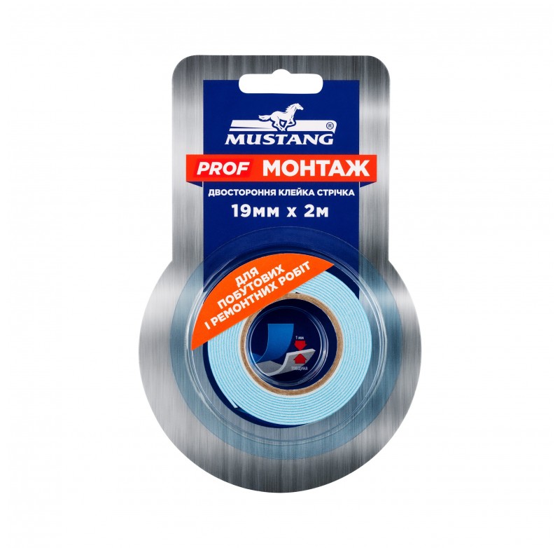 Двосторонній скотч на вспіненій основі «PROF МОНТАЖ» складається з носія на основі спіненого поліетилену білого кольору на який з обох боків нанесений клей. Особливою перевагою цієї стрічки є акриловий клейовий шар, котрий має надвисокий рівень стійкості до сонячного випромінювання, пару, вологи, низьких та високих температур від -20 до +120°С, а також забезпечує довгострокове кріплення.