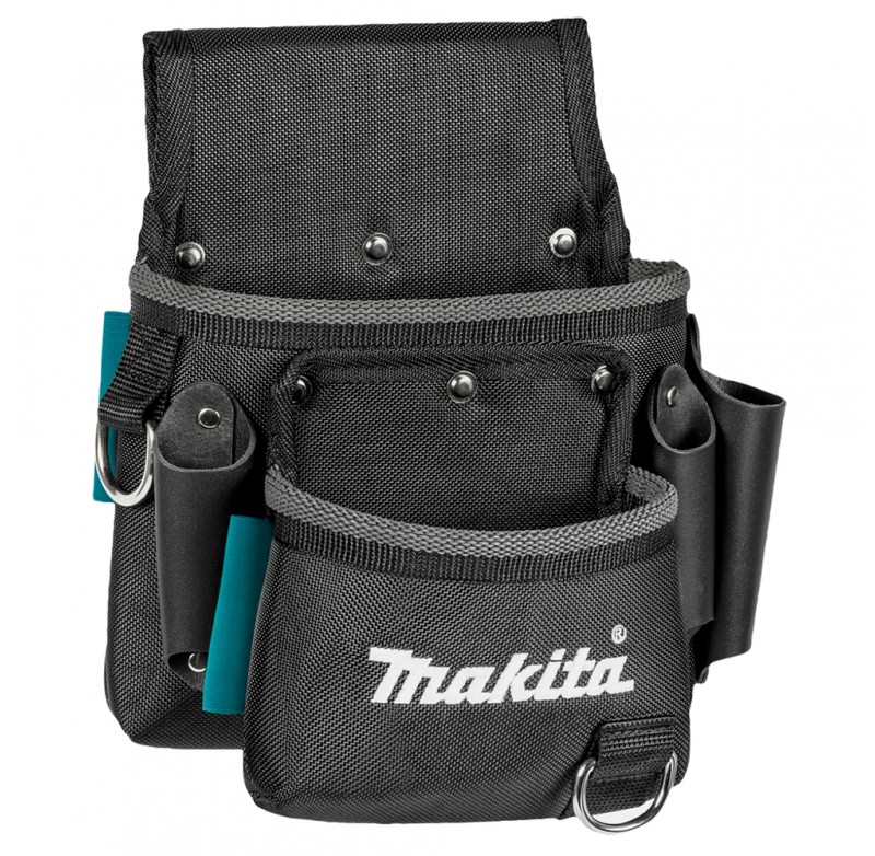 Сумка на пояс має багато петель і відділень для ручних інструментів, а гвинти або цвяхи можна зберігати в передній кишені.