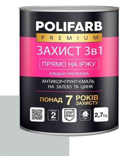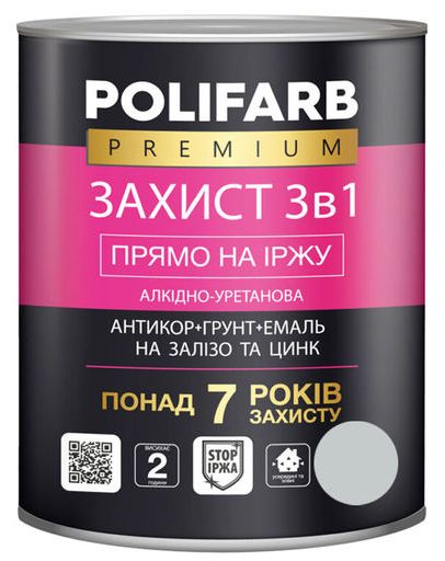 Повний опис: Фарба Polifarb Метал захист 3 в 1 сіра 2,5кг RAL7042 Застосування: для внутрішніх і .....