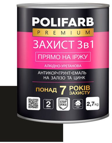 Повний опис: Фарба Polifarb Метал захист 3 в 1 чорна 2,5кг RAL9011 Захист "3в1" ТМ Polifarb - це ви.....